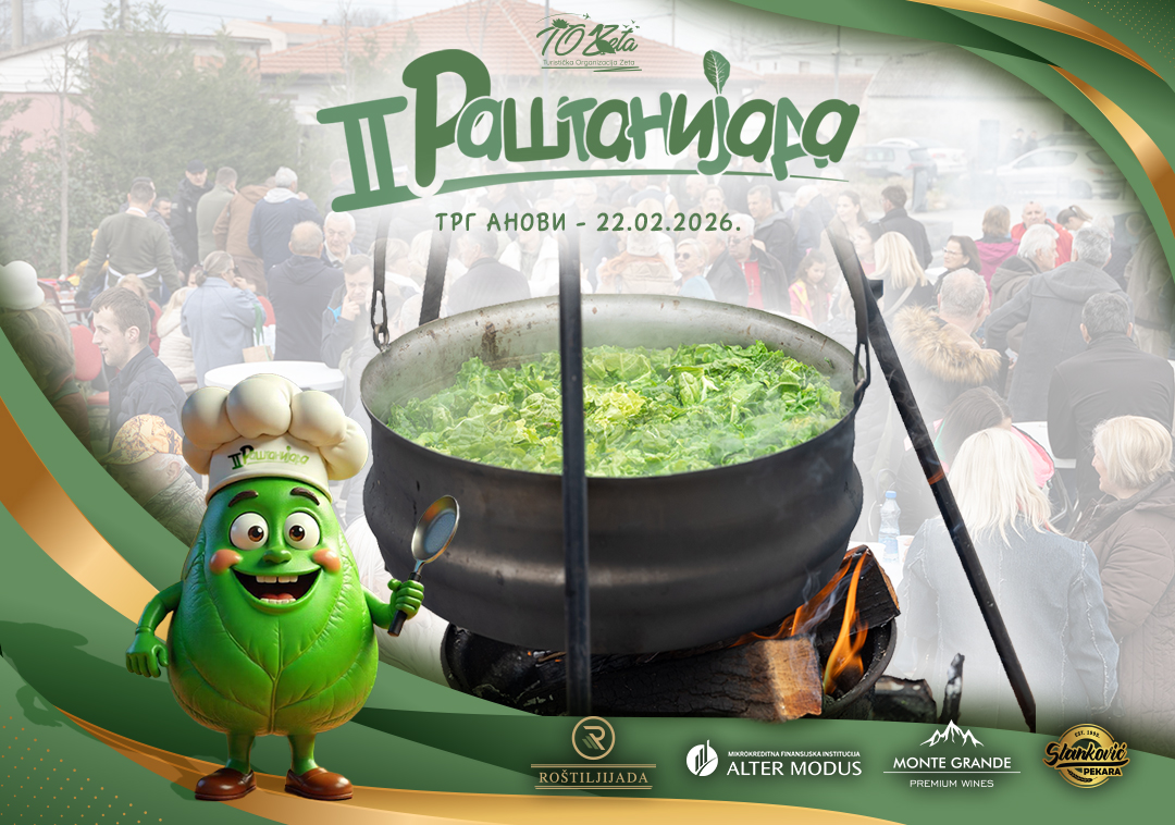 🥬 II RASTANIJADA – TRG ANOVI 🥬📅 22. februar 2026. Mirisi domaće kuhinje, dobra atmosfera i tradicionalni specijaliteti ponovo nas okupljaju!Turistička organizacija Zeta vas poziva na drugu Raštanijadu, manifestaciju posvećenu jednom od najprepoznatljivijih jela našeg kraja. 👩🍳👨🍳 Očekuju vas: ✔️ Takmičenje u pripremi raštana✔️ Dobra hrana i druženje✔️ Autentični ukusi i duh tradicije✔️ Program zaNastavite čitati “II RAŠTANIJADA”